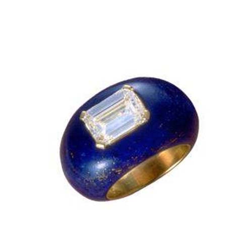 Or jaune, Diamant taille émeraude, Lapis-lazuli